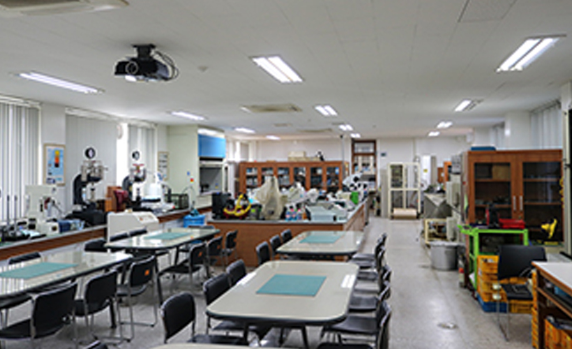 재료실험실은 기계재료의 기계적성질을 시험하기 위하여 재료의 인장, 압축, 굽힘, 충격강도시험 및 금속조직시험 등을 행할 수있도록 금속 현미경, 각종 경도 시험기, 충격시험기, 만능 재료시험기, 각종 열처리 설비를 구비하고 있다.